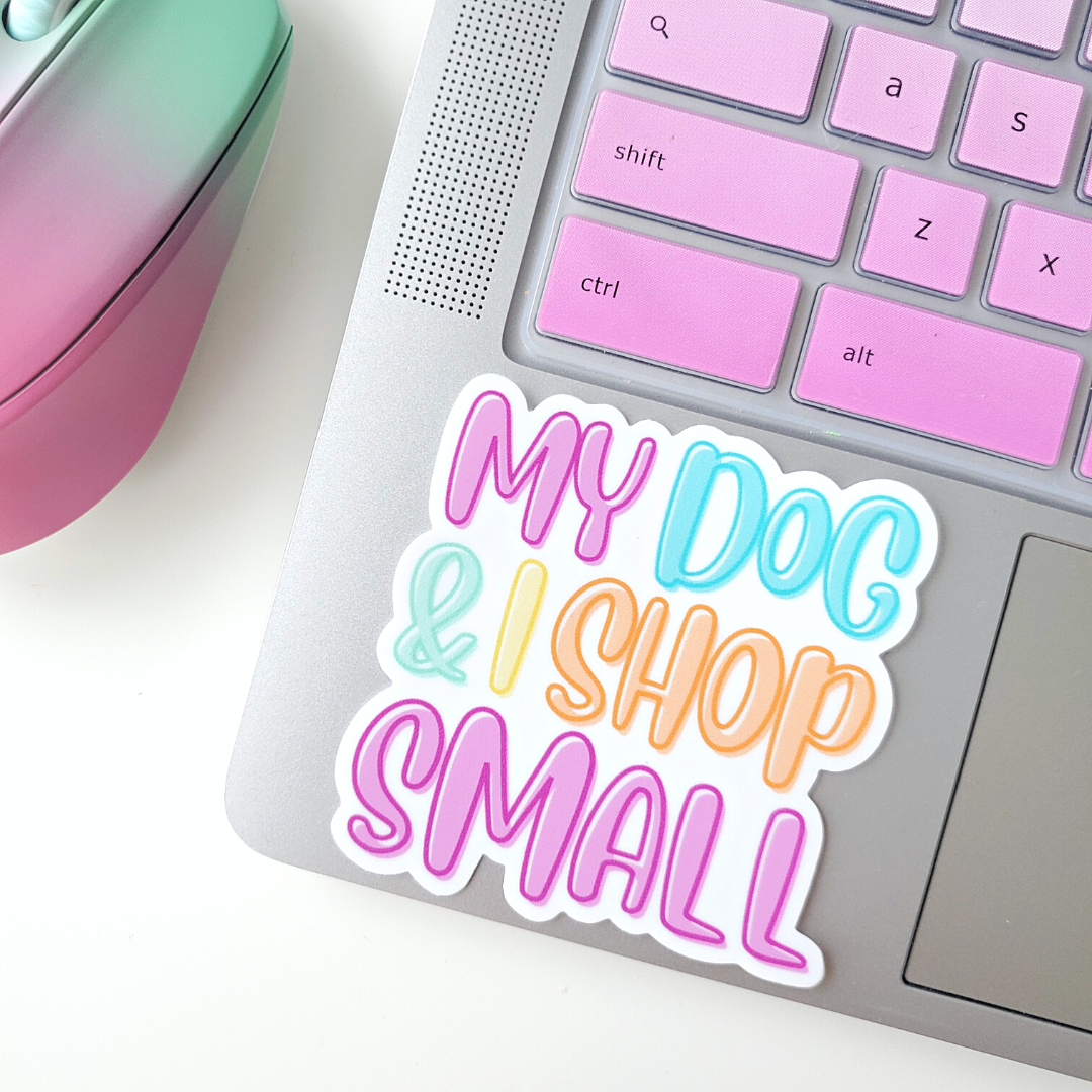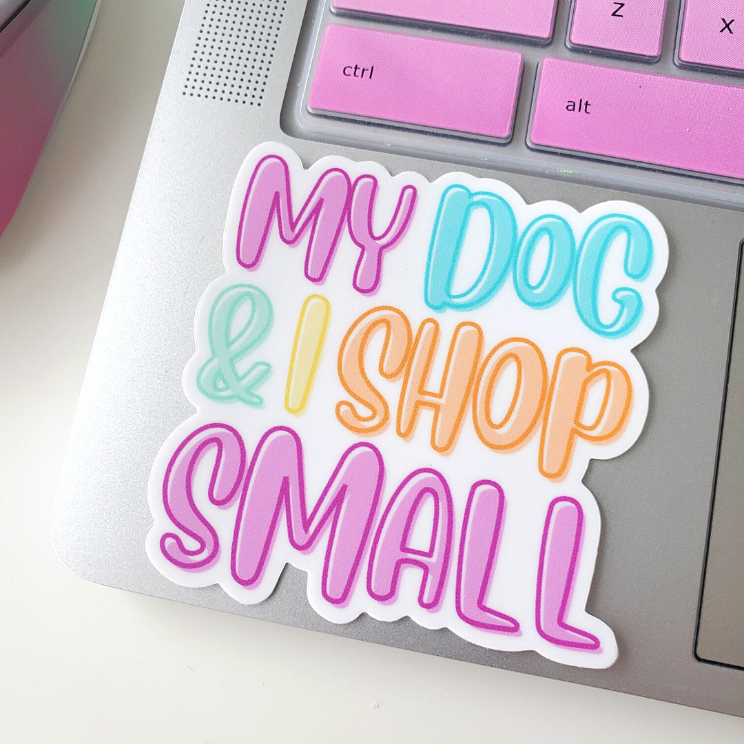 Let everyone know you shop small with the "My Dog & I Shop Small" sticker! They’re perfect for water bottles, laptops and everything in-between.